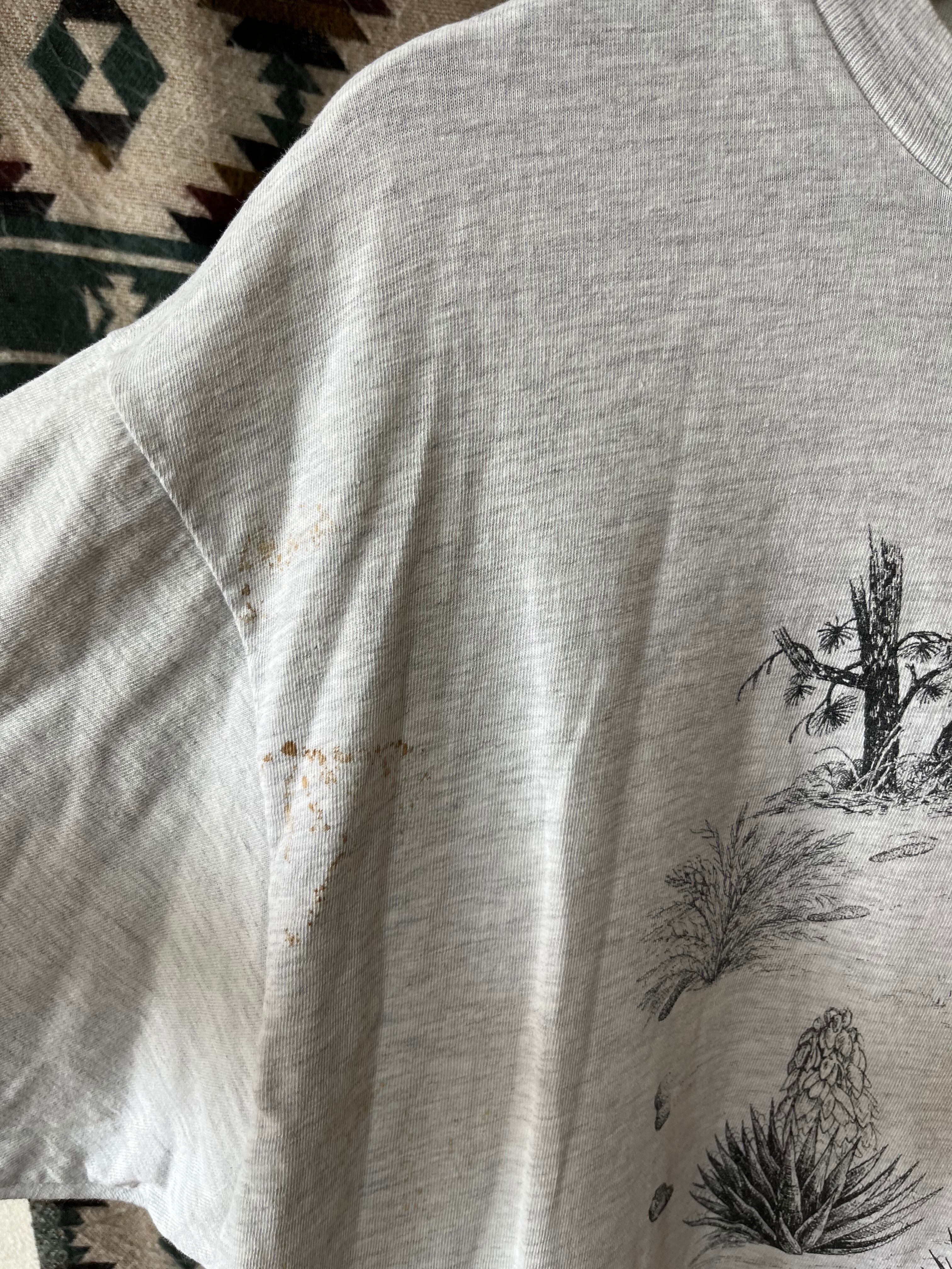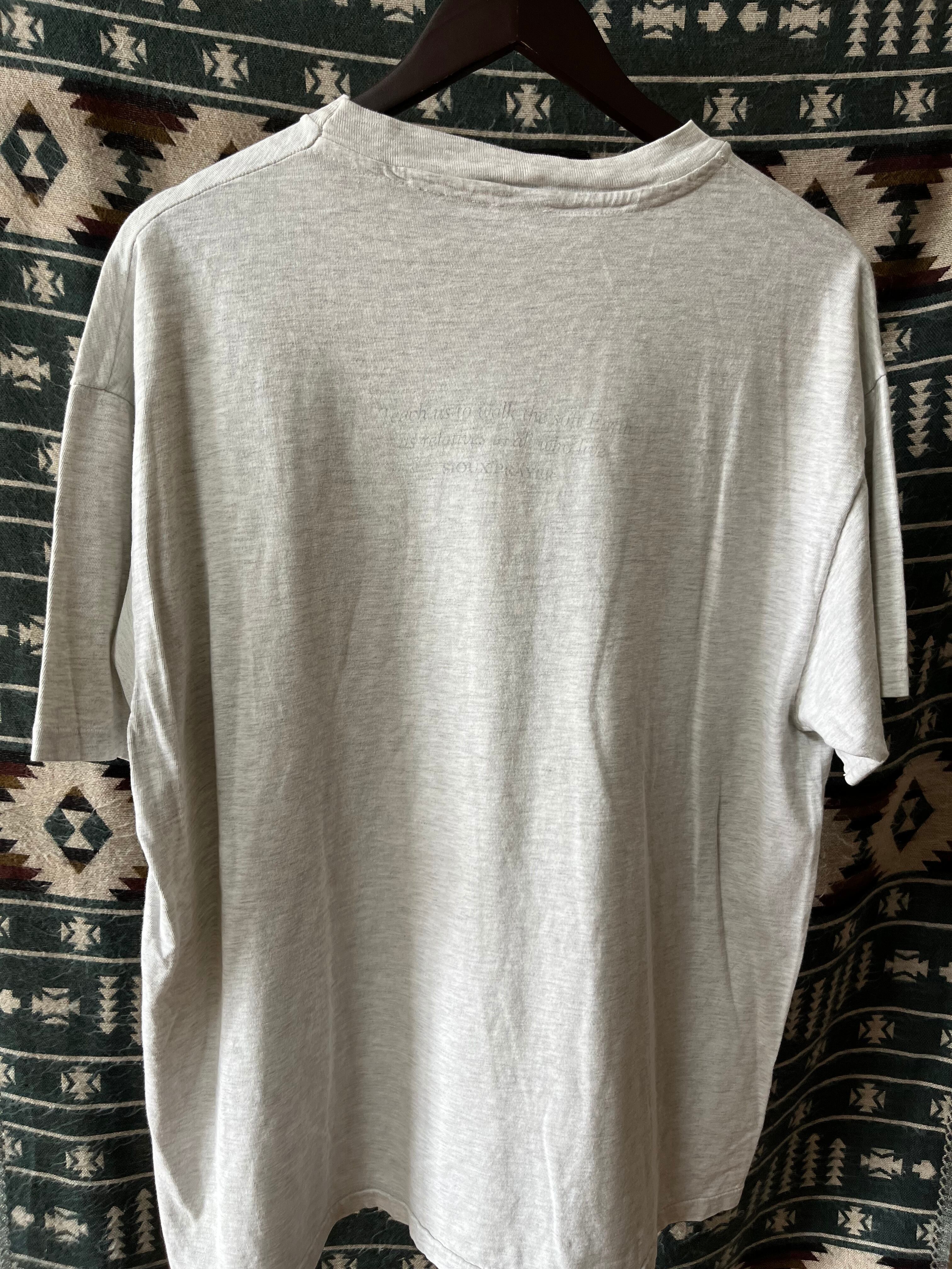 古めかしいデザインのTシャツ。